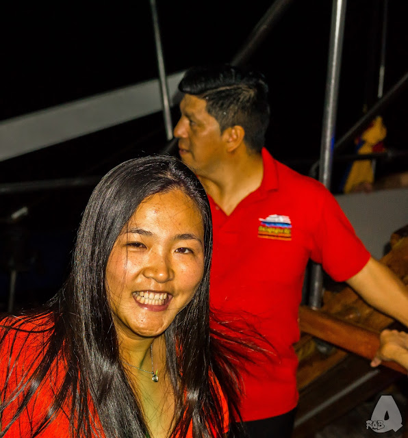 With all but one dive completed, it is time for the Crew to once again step up the fun factor and have another party! This time, it's live music with a couple of ukelele's, a guitar, a pan flute, and a bucket as a hand drum. Gonzalo, our Maitre D, is responsible for many things, having fun is definitely one of them. He leads the dancing tonight long enough for us to take over. Then he gave us more wine. Then more wine. Its okay since the next morning is a land excursion and diving with a hangover is ill-advised.